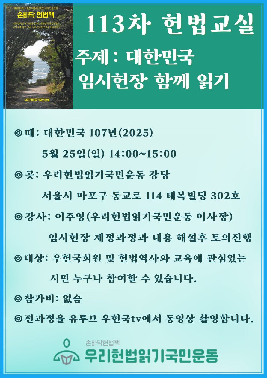113차 헌법교실. 대한민국 임시헌장 함께 읽기